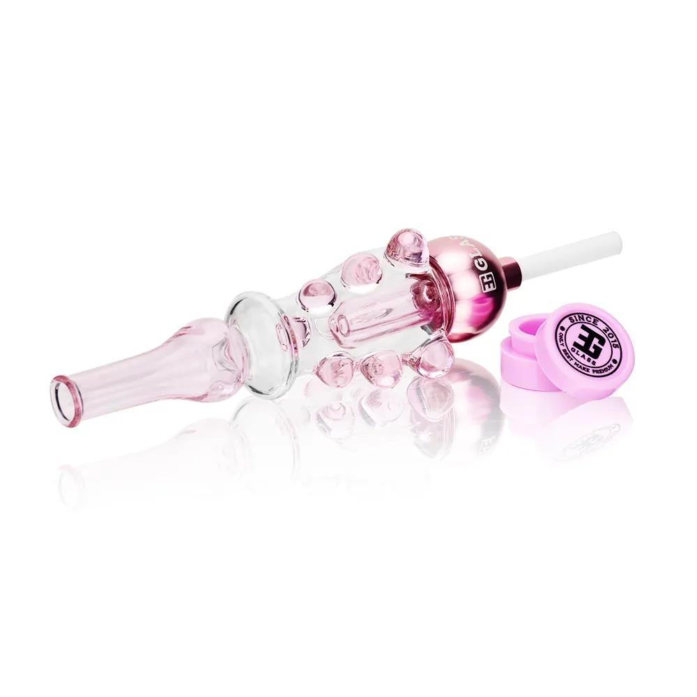 The EG Glass 6.5″ Modular “Pull & Clean” Bubble Grip Nectar Collector (NC2523) is a compact, modular dab straw designed for portability and ease of maintenance. Standing at 6.5 inches and weighing 128g, this unit combines a borosilicate glass body with a durable metal connector and a screw-in 510-thread ceramic tip.