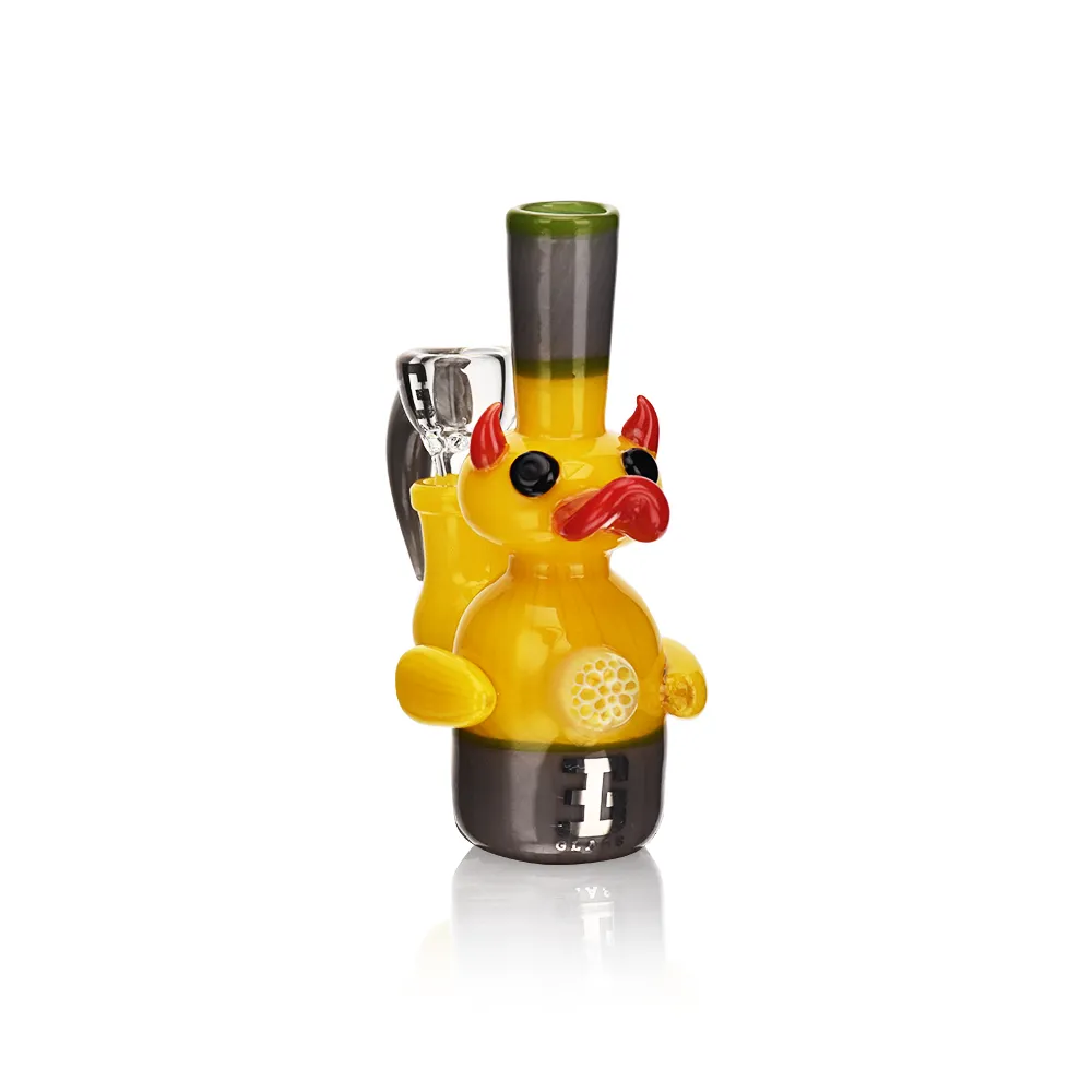 The EG Yellow Duck Mini Rig is a fun, heady-style mini dab rig designed for shops that want a small footprint with strong character. Standing at around 5 inches and weighing about 97 g, this USA-color mini rig features a sculpted yellow duck sitting on a glass base, giving it instant novelty appeal without losing everyday usability. Crafted from heady boro glass and branded under EG Glass / Esigo Glass, it fits perfectly into your design-led mini rig range.